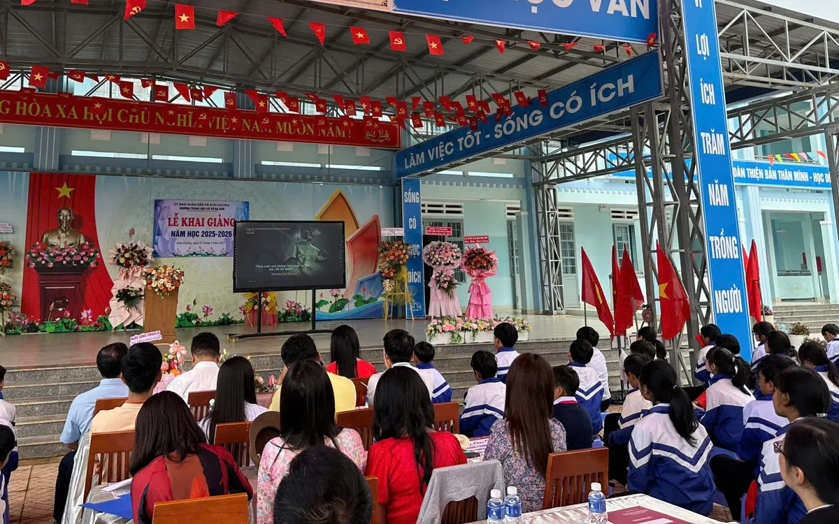 Trong khi đó, tại Lâm Đồng, lễ khai giảng cũng diễn ra trong không khí trang trọng và đậm sắc màu văn hóa. Ở Trường THCS Đạ Ròn, xã Đơn Dương, nhiều học sinh khoác lên mình trang phục truyền thống của dân tộc K’Ho, Mạ, Chu Ru… tạo nên bức tranh khai trường đầy sinh động.