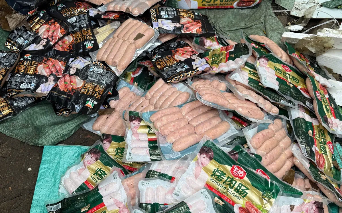 Lực lượng chức năng thu giữ 1,7 tấn xúc xích không rõ nguồn gốc.