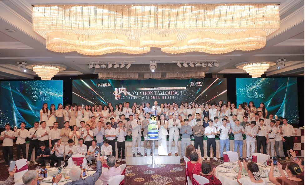 Toàn cảnh buổi lễ kỷ niệm với chủ đề “15 Năm Vươn Tầm Quốc Tế – 15 Years of Global Reach” của EcoWipes Việt Nam. (Ảnh: EcoWipes Việt Nam)